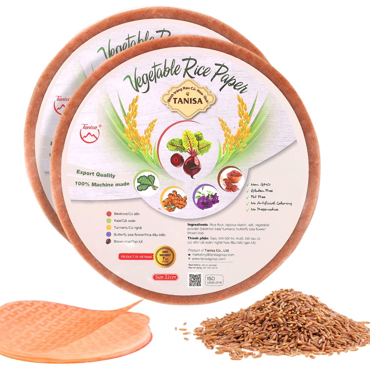 Tại Công ty TANISA, chúng tôi tự hào với danh tiếng là nhà sản xuất, cung cấp, phân phối các sản phẩm bánh tráng đáng tin cậy và uy tín. Với kinh nghiệm xuất khẩu sang hơn 30 quốc gia, chúng tôi cam kết về chất lượng cao, đảm bảo rằng mỗi tờ bánh tráng khi rời khỏi cơ sở của chúng tôi đều đạt tiêu chuẩn cao nhất. Chúng tôi lấy gạo từ những cánh đồng tươi tốt của Việt Nam, nơi nổi tiếng là nơi sản xuất một số giống lúa ngon nhất thế giới. Với sự chăm chút tỉ mỉ và chú ý đến từng chi tiết, chúng tôi biến nguyên liệu thô này thành loại bánh tráng đặc biệt phù hợp cho công thức nấu nướng của bạn. Bánh tráng gạo lứt đáp ứng các sở thích ăn kiêng đa dạng, khiến nó trở thành lựa chọn phổ biến của những người có nhu cầu khác nhau. Cam kết của chúng tôi trong việc tạo ra một sản phẩm không chỉ ngon mà còn được chứng nhận bởi HALAL và FDA, đảm bảo rằng sản phẩm đó có thể được người tiêu dùng toàn cầu tiếp cận và yêu thích.